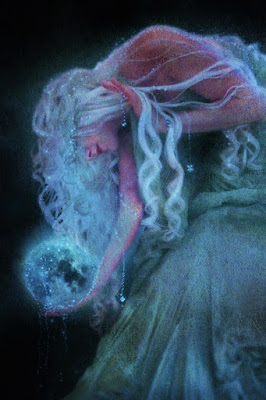 Ela tinha a pele alva, cabelos prateados, vestida uma espécie de túnica branca translucida e seus pés não tocavam o chão. Estava suspensa no ar como uma fada.